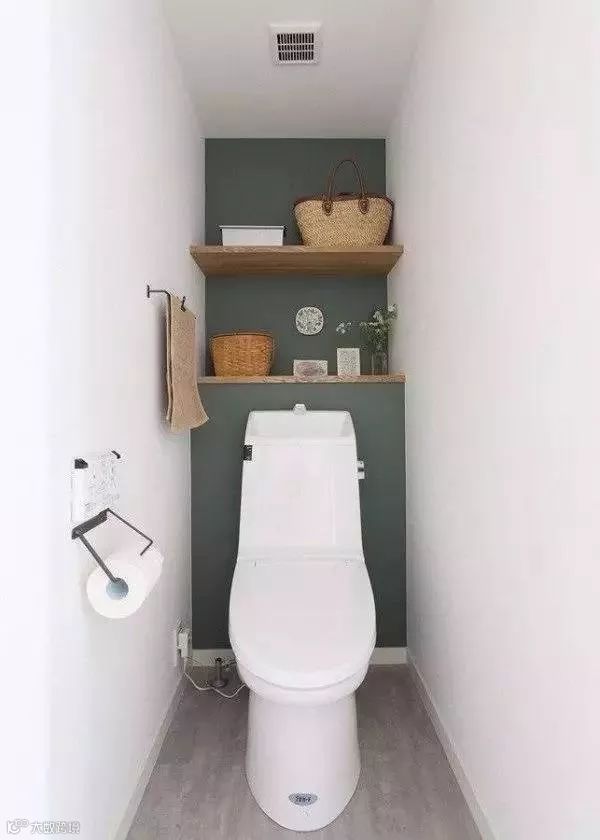 本着不浪费空间的原则,马桶后面的置物隔板,还能解决必要的收纳问题。