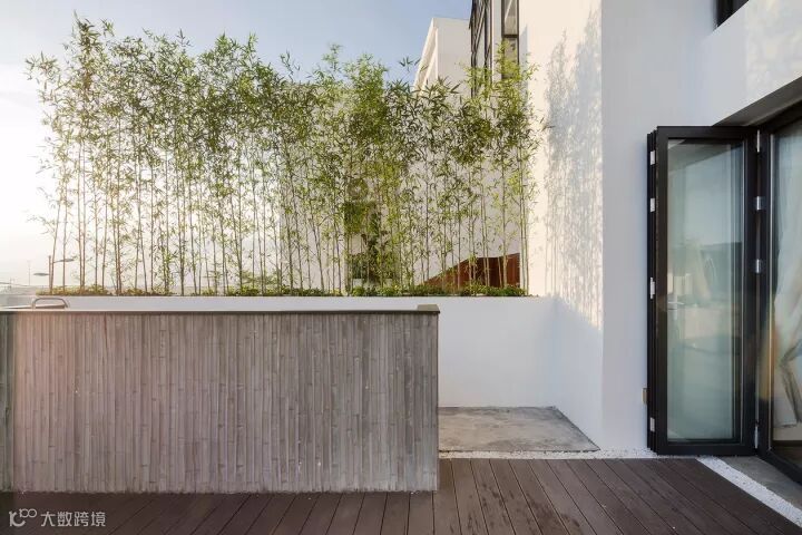 室内的三层功能布局被重新梳理,将二层打造成内外全开敞的私享聚会庭院;三层满足委托初衷,设为可居型培训课室;四层建成一套全功能型生活度假公寓。从二层的户外楼梯一直往上来到四层,专为私人打造的全功能度假休闲空间。