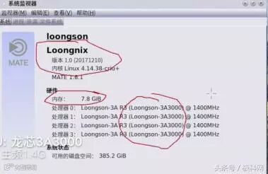 该系统配置为CPU龙芯3A3000,Linux的内核。该网友表示,系统和软件还是挺稳定的。没遇到过莫名死机的情况。该操作系统是龙芯自己做的Loongnix,基于Fedora的Linux发行版, 另外还可以安装Deepin龙芯版,中标麒麟等操作系统,办公软件有wps龙芯版, 其它的Linux下的开源软件,绝大多数都能在龙芯上运行。 播放视频方面1080p毫无压力,但4k片源就不行了,这点比较遗憾。系统稳定这是电脑芯片最基本的要求,然而龙芯最大的问题不在这些基本方面,龙芯最大的麻烦是软件生态,比如QQ就没有龙芯版,而且龙芯也没有能力解决生态的问题,但马化腾就是不出Linux版QQ,你能把它怎么样?