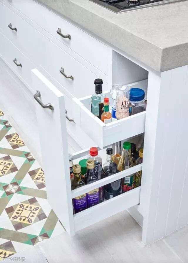 厨房空间不大,东西却不少,如果没有收纳好,加上油烟肆虐,厨房一定成了乌烟瘴气的地方,所以说,厨房装修首先考虑的问题是—收纳!