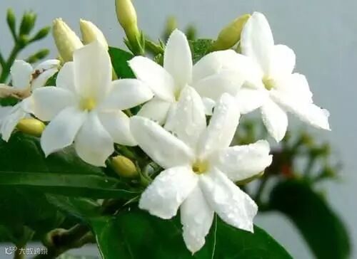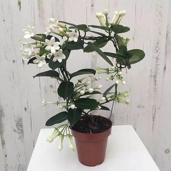它叶子比茉莉花要大很多,花期也短,主要观叶,翠绿厚实的叶片作为家居装饰,视觉上能够给人一种愉快之感~