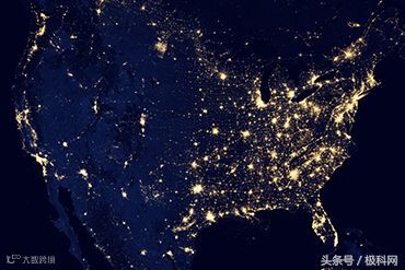 这是2012年美国宇航局卫星拍摄到的美国夜空,显示夜空几乎被人造光照亮。