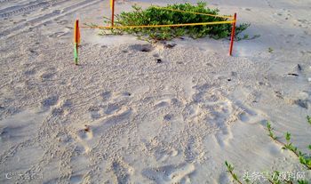 在美国佛罗里达州Vero Beach,研究人员标记刚孵化出来的小海龟行动轨迹。大部分海龟都被人造光所迷惑,反而会远离海洋。