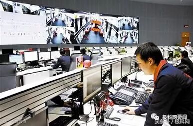 工作人员在地铁控制中心监控实时的高清视频