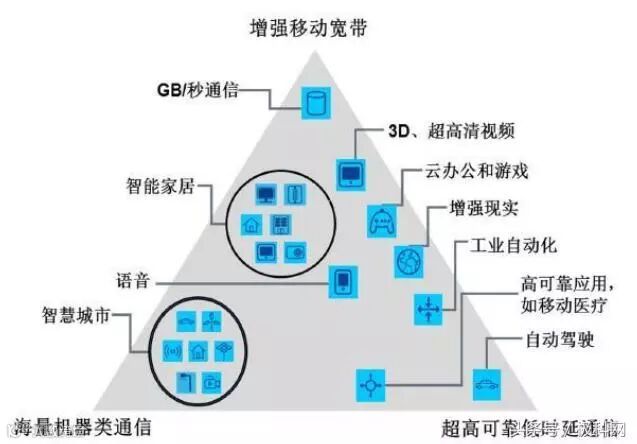 5G 技术将围绕 3 个方面进行大规模的应用,即增强型移动宽带(EMBB)、海量物联网(MIoT)以及超低时延高可靠通信(uRLLC)。