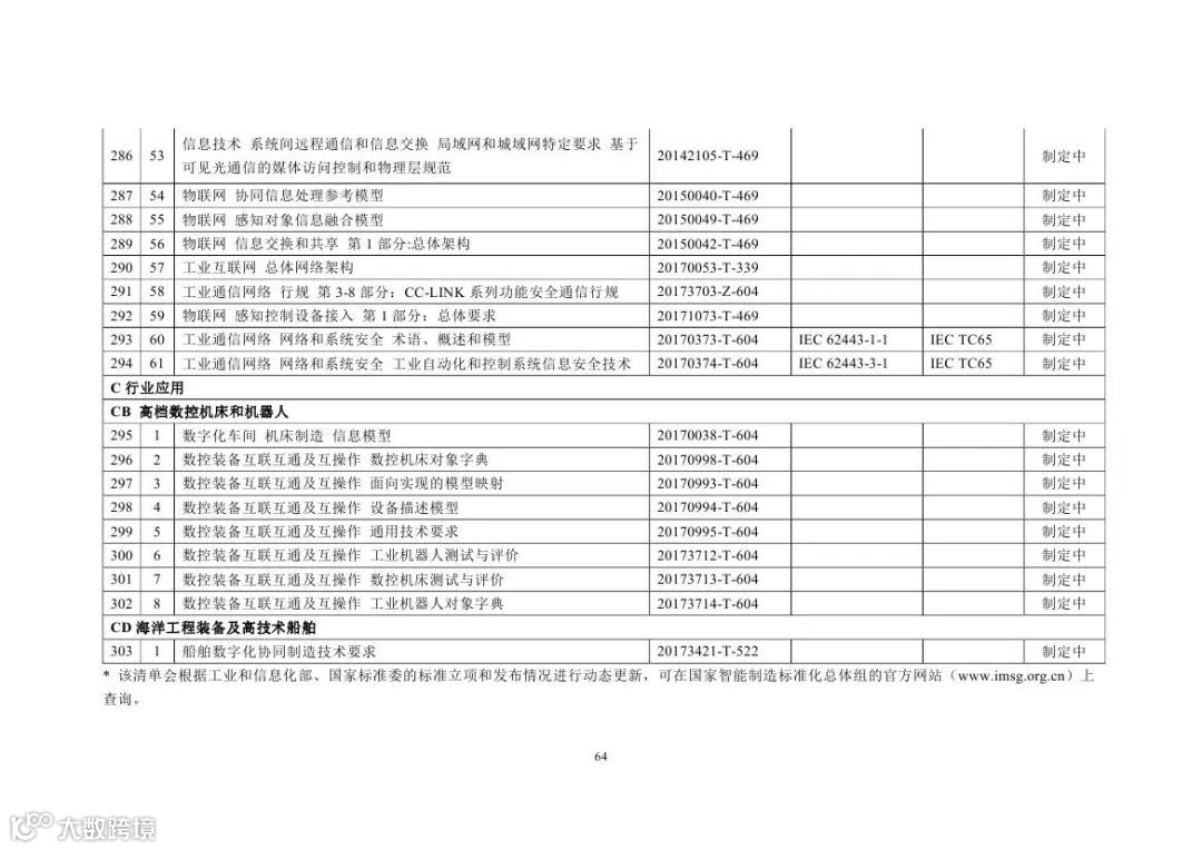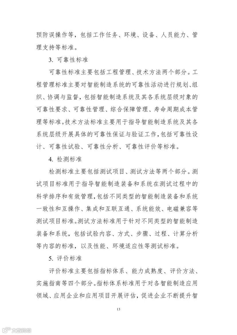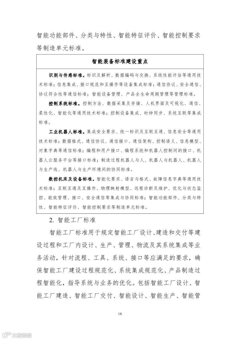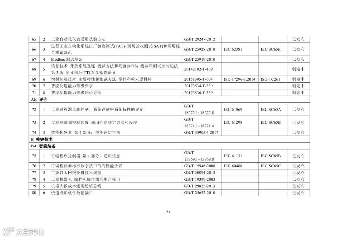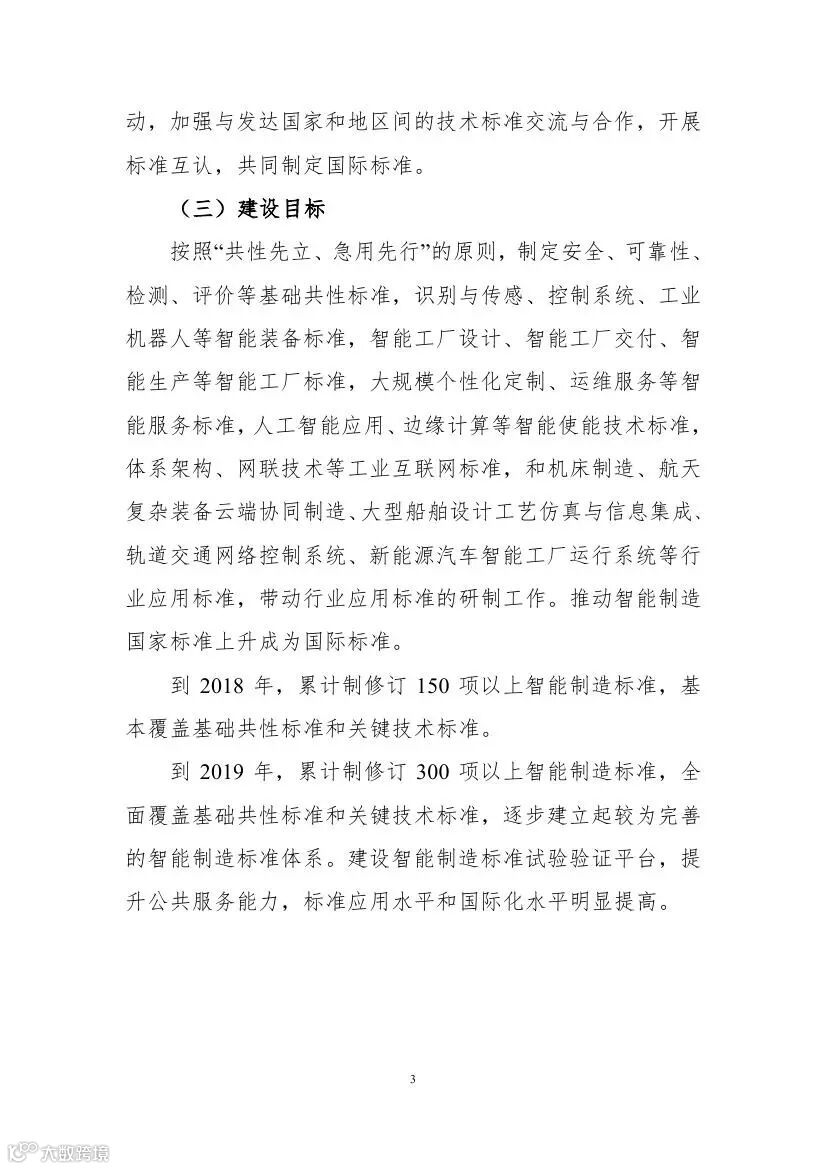 征求意见稿指出,到2018年,累计制修订150项以上智能制造标准,基本覆盖基础共性标准和关键技术标准。到2019年,累计制修订300项以上智能制造标准,全面覆盖基础共性标准和关键技术标准,逐步建立起较为完善的智能制造标准体系。建设智能制造标准试验验证平台,提升公共服务能力,标准应用水平和国际化水平明显提高。