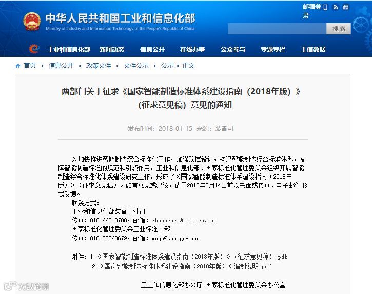据工信部1月15日消息,为加快推进智能制造综合标准化工作,加强顶层设计,构建智能制造综合标准体系,发挥智能制造标准的规范和引领作用,工业和信息化部、国家标准化管理委员会组织开展智能制造综合标准化体系建设研究工作,形成了《国家智能制造标准体系建设指南(2018年版)》(征求意见稿)。