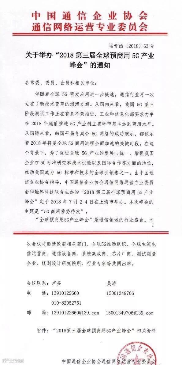 为了促进全球5G产业的发展与统一,增强我国企业在5G标准研究和技术试验以及国际合作等方面的地位,推动我国成为5G标准和技术的全球引领者之一。由中国通信企业协会指导,中国通信企业协会通信网络运营专业委员会和触界科技联合主办的“2018第三届全球预商用5G产业峰会”定于2018年7月2-4日在上海市举办。