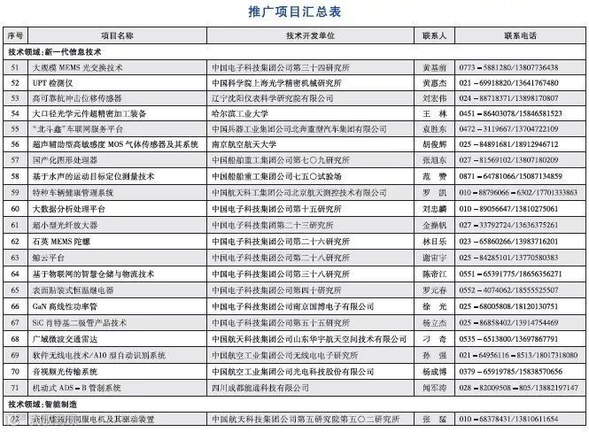为贯彻落实制造强国和军民融合发展战略,推动实施“中国制造2025”,促进军民两用高新技术成果服务国防和军队建设。近日,工业和信息化部、国防科工局联合发布了2017年度《军用技术转民用推广目录》通知。