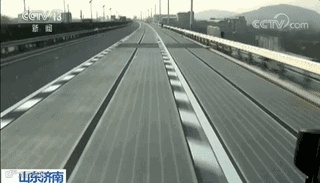 这种路面的全称是承载式高速光伏路面,最上面一层是类似毛玻璃的半透明新型材料,摩擦系数高于传统沥青路面。在保证轮胎不打滑的同时,还拥有较高的透光率,可以让阳光穿透它,使下面的太阳能电池把光能转换成电能,实时输送上电网,就好像一个巨大的“充电宝”。在冬季,这段路面还可以将光能转化为热能,消融冰冻积雪,确保行车安全。