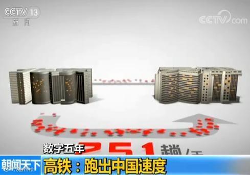 在北京和天津之间,每天往返的高铁有251趟,平均10多分钟就有一班,比五年前增加了30%。