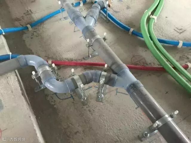 卫浴间也是整体安装,所有的弯头、双通、三通管,都采用透明的塑料材质。这样做的好处是,一旦发现管道堵塞,一眼就能看清,给检修带来极大的便利。