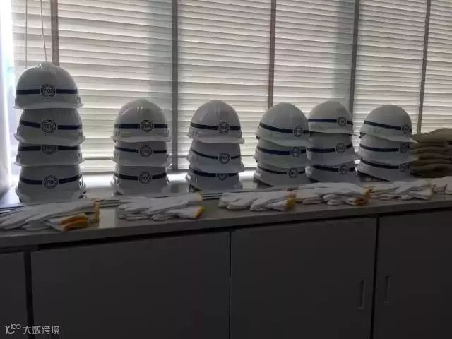 进入工地的任何人都要换上统一的工装,戴上安全头盔并且穿工装鞋。