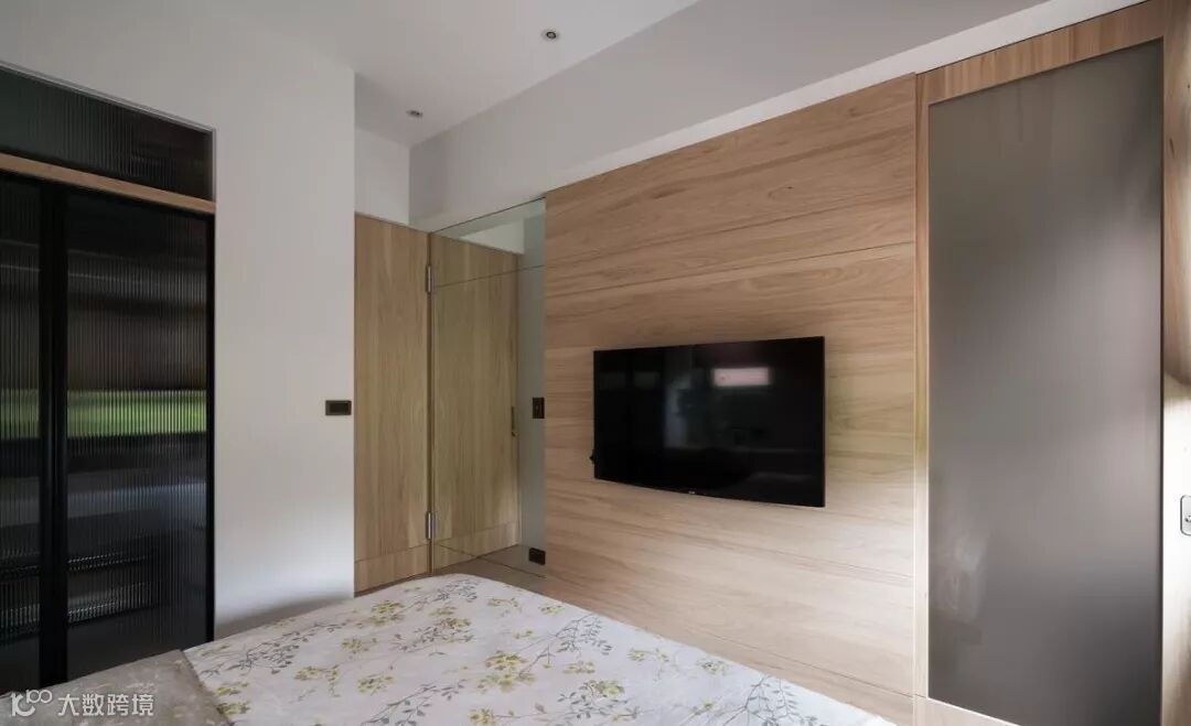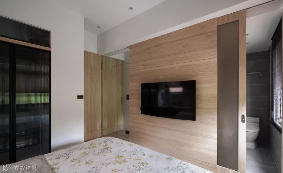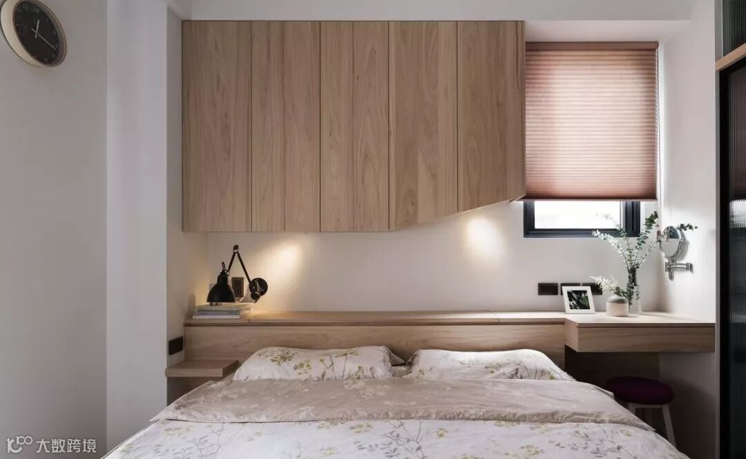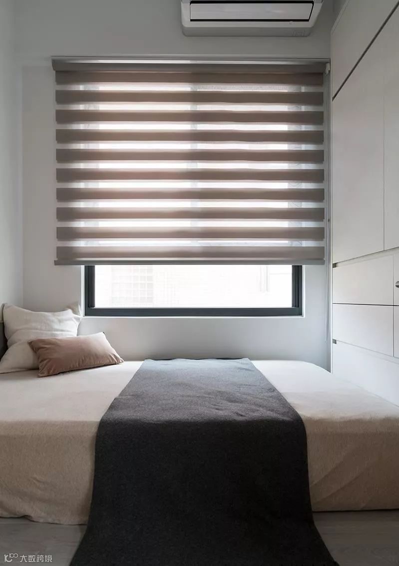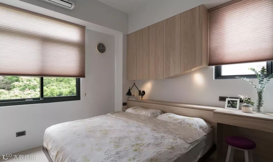 原先的主卧,存在着梁柱琐碎的问题,于是将床头柜与梁体加以整合,消弭不必要的锐角,同时串联化妆桌功能,落实清爽简约、精简实用的空间构架,床尾处则安置通往卫浴的信道口,形塑出流畅的使用动线。