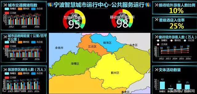 智慧城市----公共服务运行。包括城市交通拥堵指数、路网密度、景区人数、星级酒店入住率、文体活动数量等。