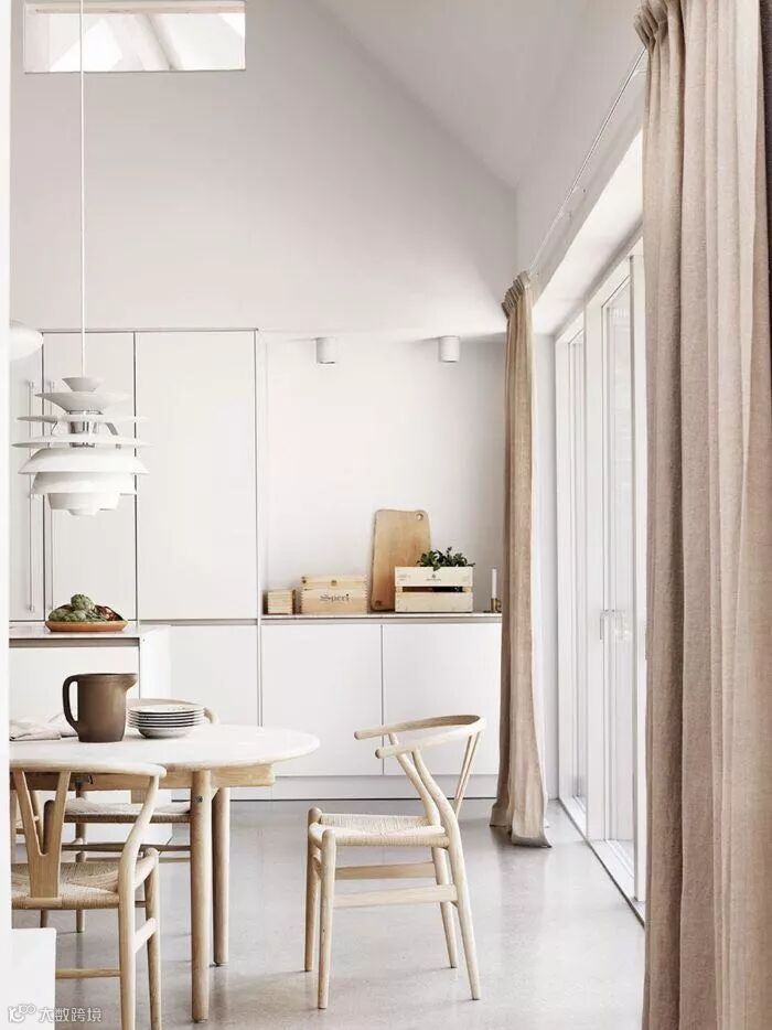 看这个厨房橱柜的颜色搭配,即知是高手所为。如果你自己定过橱柜,就知道,在国内的橱柜供应商,很少有人给这么配色的,原因简单——麻烦。白色现在国内都能做,价格适中的是白色的哑光或者亮光亚克力材质(戳这里看我们的),麻烦的地方在于,台面用的原木色,上柜和下柜之间用原木色,橱柜外侧朝向餐厅的那一面也是原木色。