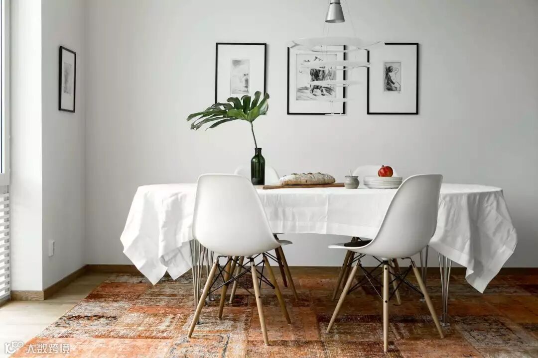 地毯已经提亮了空间,黑白木,再加一抹绿色,色彩刚刚好
