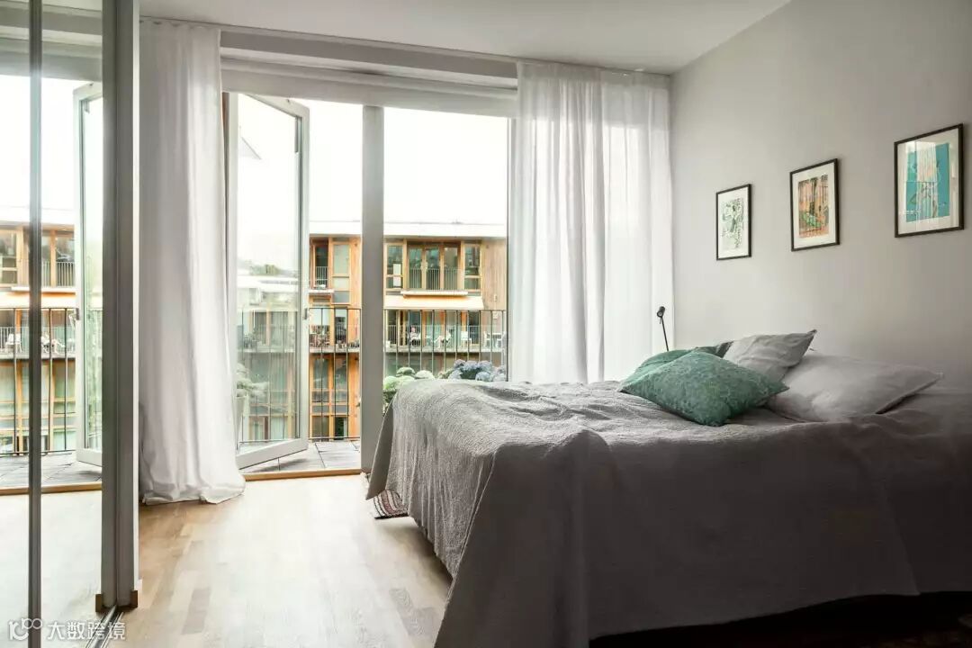 主卧,白色拖地亚麻窗帘,有圣洁的美