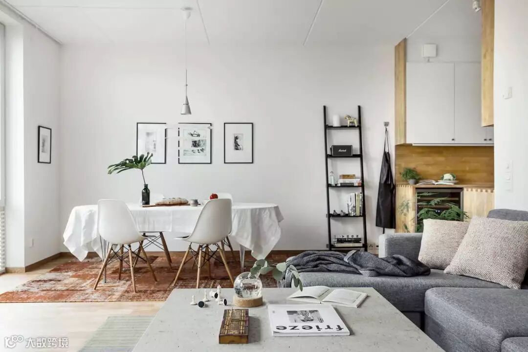 色彩是以原木色为主(不是更温暖的蜂蜜色而是更明亮素净的原木色),跟很多日式传统公寓用满木色不同,这间北欧风格的公寓展现的是原木色+白色,点缀以灰色黑色,整个公寓没有过多的矫饰,展现出的是一种自内而外的风格统一,展现的是设计者的克制和自信。