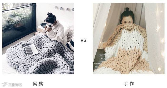 种草理由:暖和又好看,为粗毛线盖毯疯狂打电话!自己徒手也可以做,只需要4~6捆的特粗冰岛羊毛线就能徒手织一条,一人追剧看书不再怕冷,而且自制成本在50元左右,超划算。