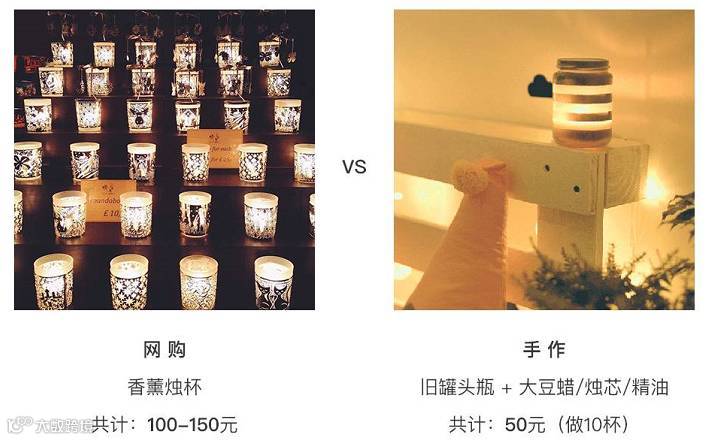 种草理由:香薰蜡烛很能衬托家里的氛围,而且移动方便,还散发着阵阵芳香。有时间自己可以做,只需要透明的玻璃罐子或杯子+大豆蜡+烛心+自己喜欢的精油,即可。看书的时候可以点1~2个,既衬托氛围,又能闻着熏香,安抚心灵。