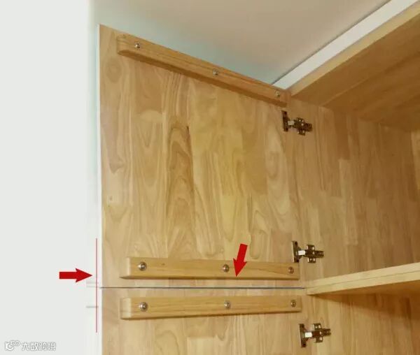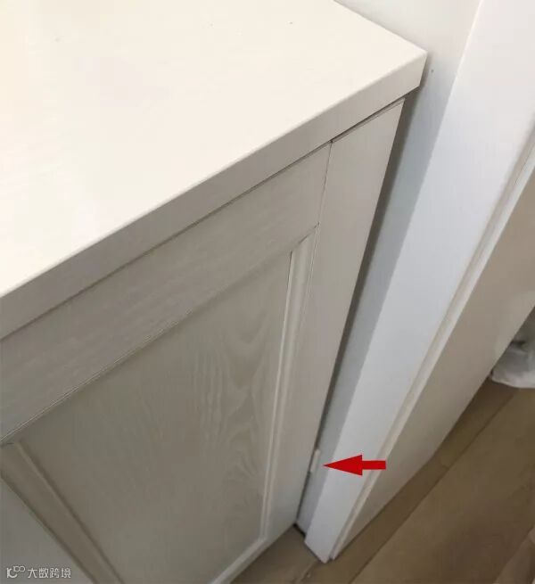 ▲安装好的柜子与墙体有缝隙,缝隙是下面小上面大