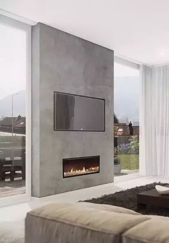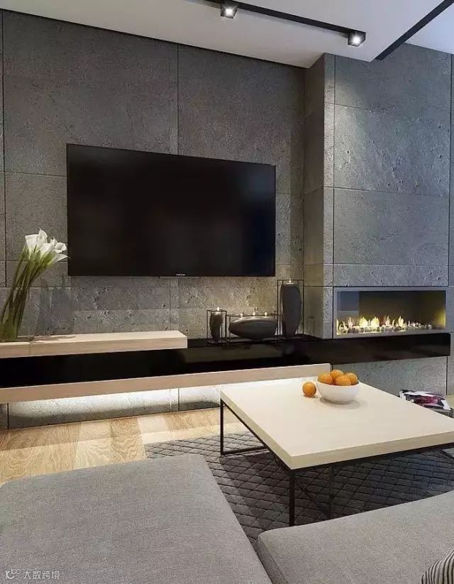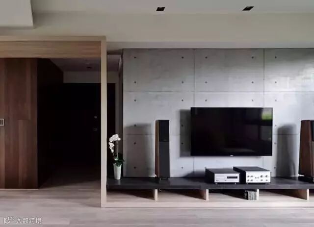 以水泥墙作为电视背景墙,