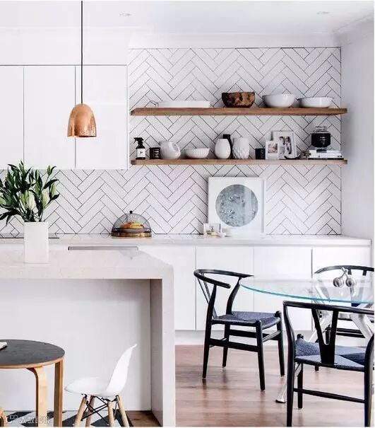 不同的瓷砖营造出不同的厨房氛围,或简约、或优雅、或波西米亚风……