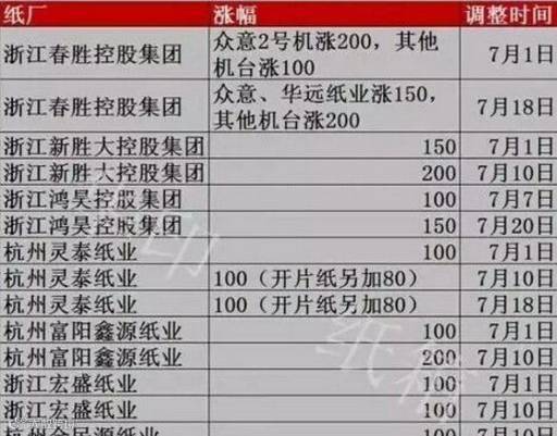 原材料疯涨之后,中间行业开始报复性上涨。7月浙江省白板纸涨价成灾,纸厂轮番掀五轮涨价,累计最高涨幅达460元/吨。而本月华东、华南、华中、西南均有涨价,截至目前涨价队伍已扩大至44家纸厂,纸种涉及白板纸、瓦楞纸、箱板纸、牛卡纸、灰板纸,单次涨幅在50-300元/吨不等。