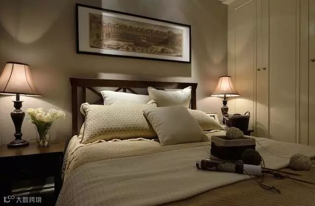 卧室的床单枕头也跟地面墙面的色调相近,给人以成熟稳重的视觉感;