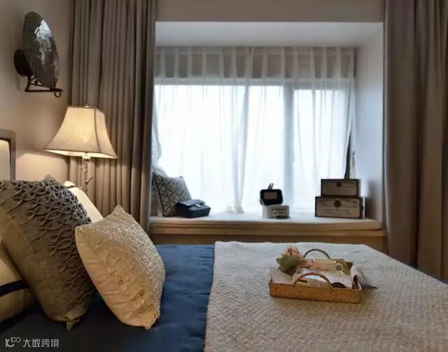 卧室也采用与客厅一直的麻布地毯,显得很稳重优雅又安静舒适;