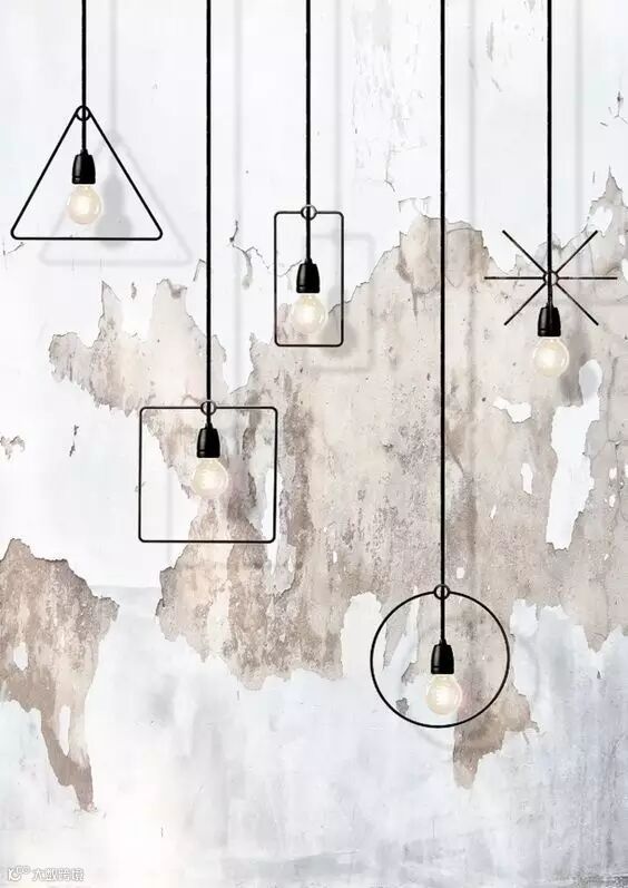 黑色的金属线条搭上圆圆的灯泡,平面立体的结合,再搭上故意做旧,癍痕累累的旧墙面,仿佛是北欧生出来的新的一种风格,可以尝试下哦~