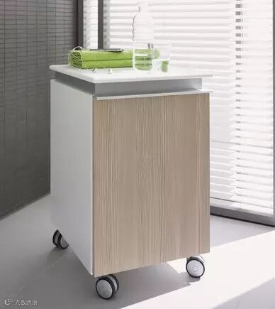 浴室柜的安置和卫浴间的面积有密切的关系,大空间要大而得当,小空间要各项功能俱全,但还是以使用方便为最终目的。可移动的小收纳柜不仅造型小巧,底部安装的万向轮更使它可以做到灵活安置,随叫随到,即使存放体积大、重量重的物品也可以做到拿取方便。