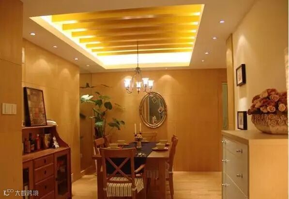不少设计师都喜欢用很多灯带来突出房间的层次感,另外,为了使家里的梁不太明显,一般都会做矩形、环形的灯池,五颜六色的灯会让家里更显温馨。