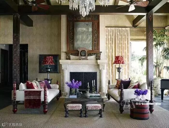 虽然印度服装色彩绚丽,但是印度家居却较为朴实,还有一种说不清的神秘魅力。除了极富民族特色的布艺装饰,印度家具以檀木为主,繁复的线条与雕刻装饰呈现出低调古朴的奢华气质。