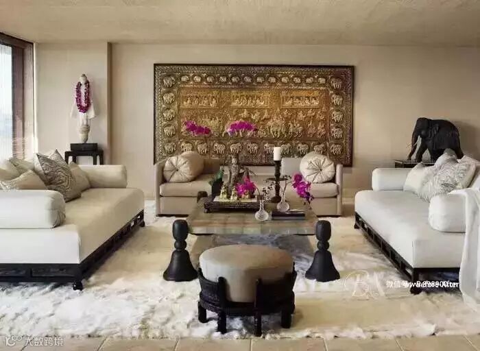 东南亚风格最能体现自然与家居相融的休闲生活态度。醒目的阔叶植物,大大的芭蕉叶,天然绿色充满热带风情,使家回归自然氛围。淳朴的实木家具,搭配浅色地毯,以及有着浓厚宗教文化的装饰,宁静的空间让一切烦躁回归平静。