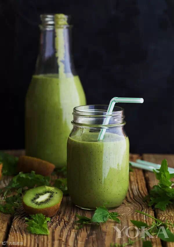 4.将打好的果蔬汁倒入杯中,可以加上淡奶油做装饰,减肥的MM也可以喝。