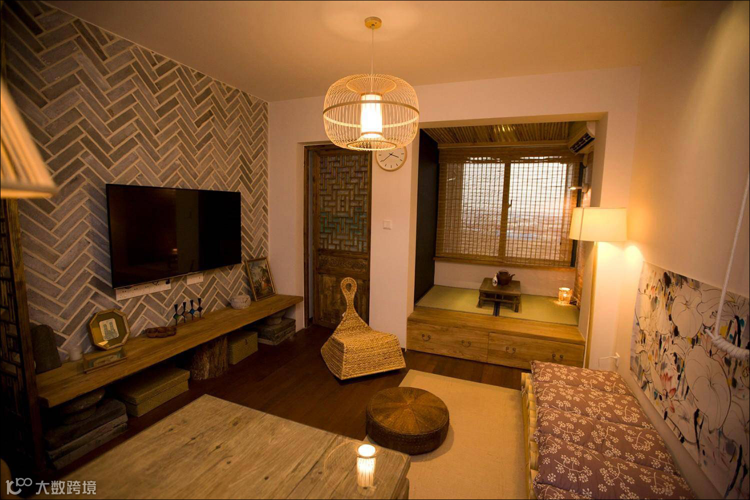 先用左右两个角度简单的介绍这个案例吧。如果你置身室内,深呼吸一口,是否已经感受到浓浓的春天原野气息。没错,这就是文青的一大特点:返璞归真、文雅自然。装修的重笔点落在木质家具上。木笼灯罩、竹藤小椅、实木长柜,甚至是二次打蜡的老木地板,都透露了主人家淡薄物质、名利的态度。