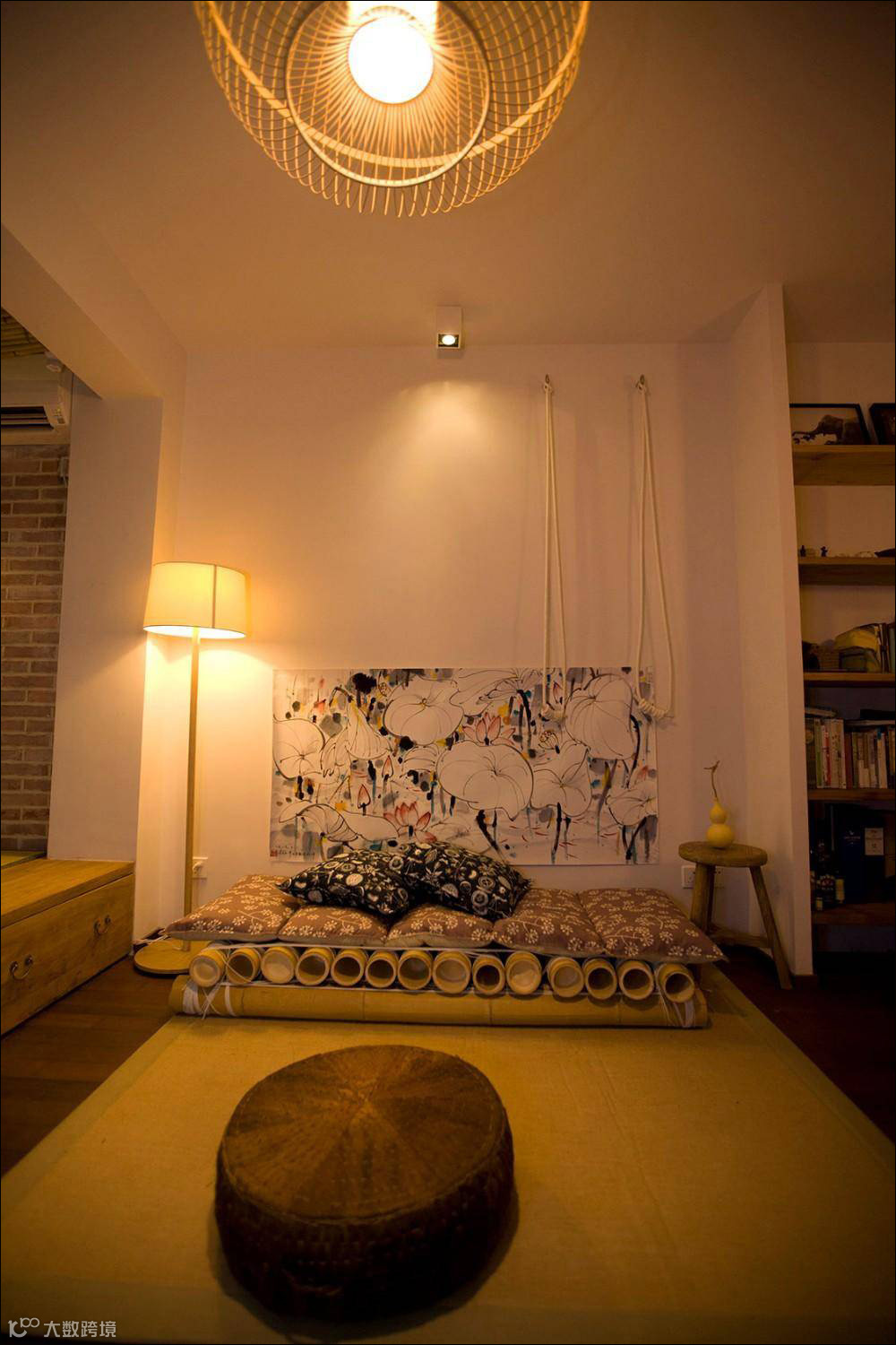 手工的木笼灯罩是小编的最爱,半笼罩着柔和的灯光。“出淤泥而不染,濯清涟而不妖”,墙上的布画就像主人的心思一样清澈。坐着竹筏,徜徉在那缓缓的“小溪”上,写意舒适。圆形的佛垫,更是给这个家增添了几分玄妙禅意。