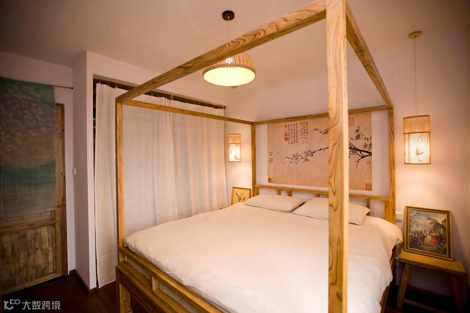 中国古典式的床铺,做旧的抽屉、环形的铜锁拉钩,让人不禁回忆起童年时和奶奶生活在一起的光景,白色的席梦思、暖橙色的格调,都激起了人心里丝丝的暖意。