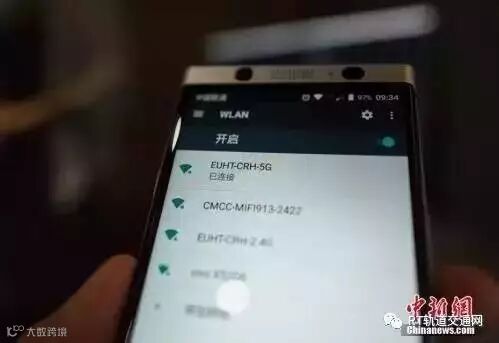 在超高速无线通信系统(EUHT)技术测试的现场,乘客通过手机连接到指定Wi-Fi,可稳定、流畅地上网和观看视频,实际体验和家中Wi-Fi基本没有区别。
