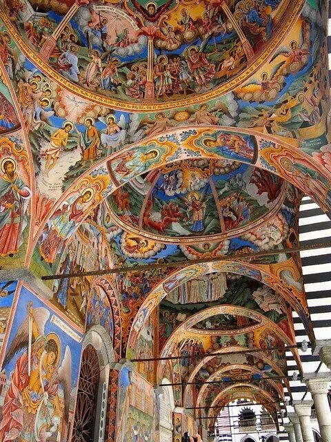 今天参观的★里拉修道院,始建于公元 10 世纪中期,是保加利亚最大和最重要的修道院,同时也是保加利亚复兴时代最杰出的作品。许多壁画和神像都出自名师之手在里。继续沿山石而上,可以一探当年的修士★圣伊万的禅修洞穴。1961年,里拉修道院被辟为国家博物馆,其中收藏有600多件文物,都弥足珍贵。同时它也是国家级旅游区之一。
