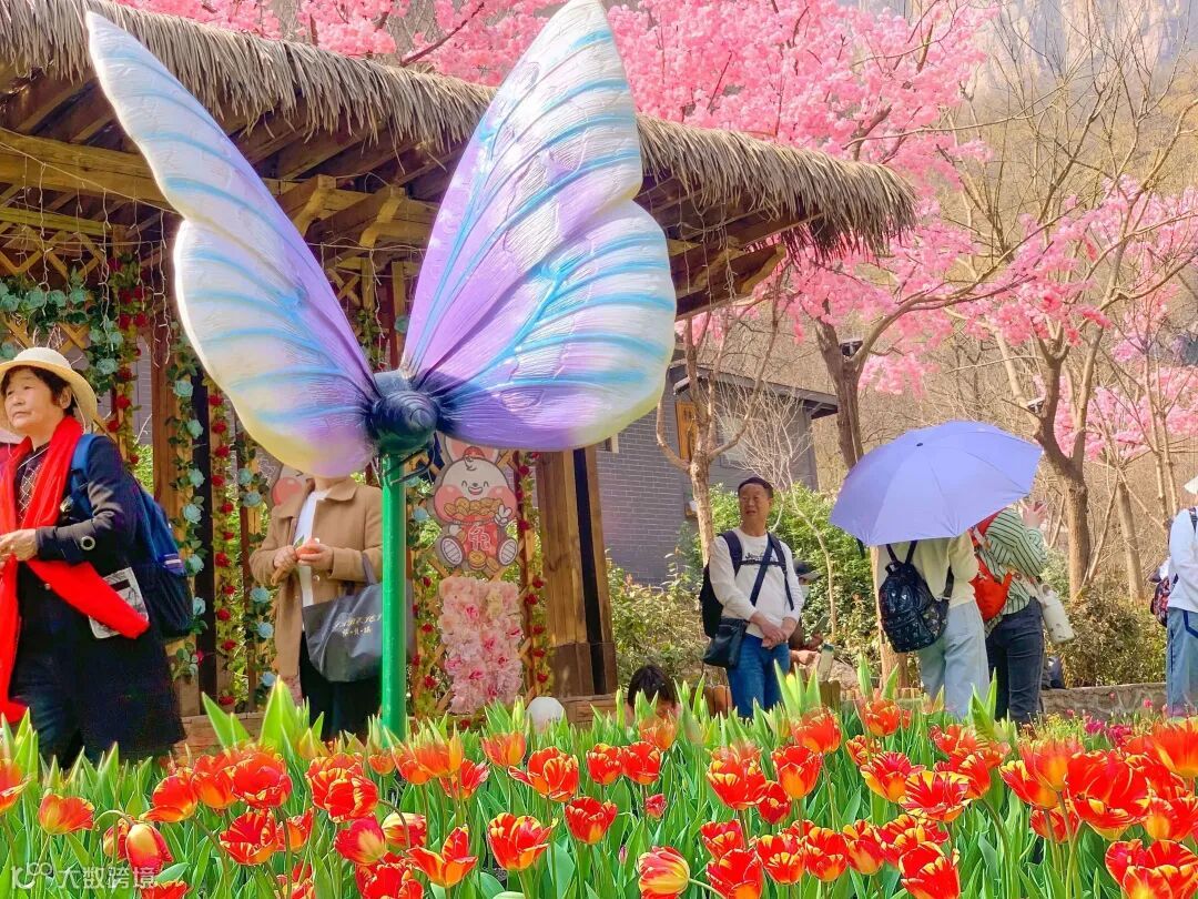 蜜蜂、蝴蝶在花丛中嬉戏、起舞