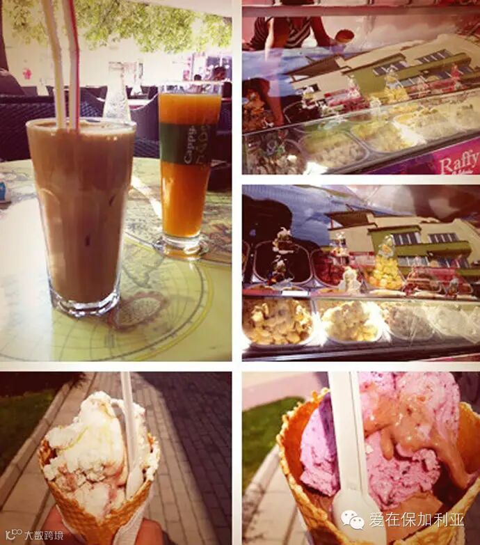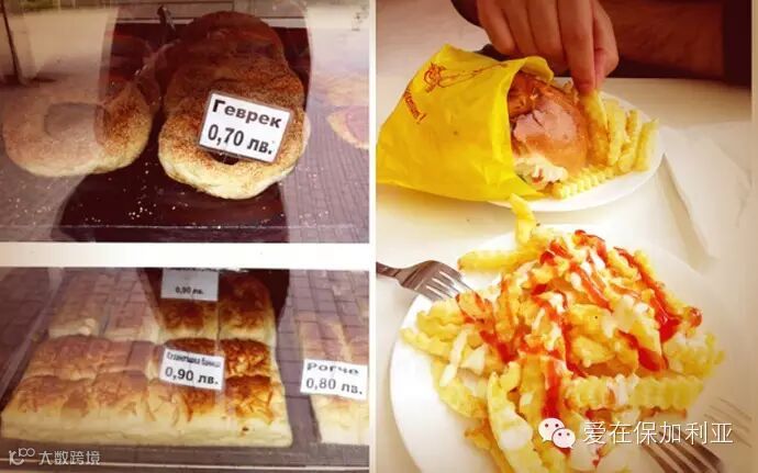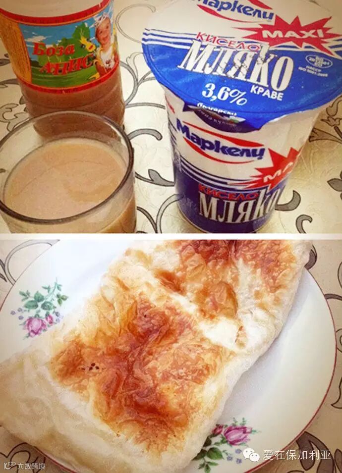 保加利亚酸奶很有名,听农大的教授说,咱们中国的酸奶都是用保加利亚进口的乳酸菌做的。下图右边的蓝色盖子的是酸奶,不过好像是羊奶的,而且他们的这种酸奶全是原味的,没有丁点儿甜。他们居然就那么酸着喝,有时候加点儿糖或蜂蜜。我是各种喝不惯。