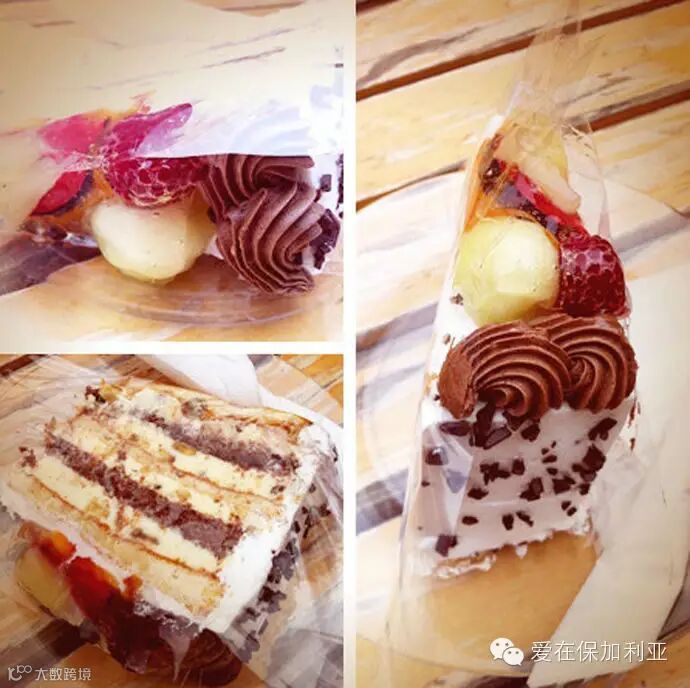 这是某天和某人爸妈上街溜达时,路过一蛋糕房要的。我只是挑了颜色很鲜艳的点了,也不知道叫什么名字。某人一尝便非常陶醉地说,嗯~~真好吃呀。我心说不跟德国的一样么。只记得蛋糕体里面有香蕉。