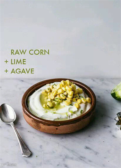 将青柠汁和龙舌兰混合,放入新鲜的玉米粒。