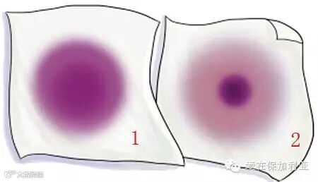 将红酒少量滴于白色纸巾上,观察酒被纸巾吸收后留下的痕迹,如果留下的均匀的红色痕迹,酒比较纯正。如果看到酒痕迹颜色很浅但均匀,则酒不够纯正,如有一圈红晕,中间却为淡色或无色,则有参假可能呢。