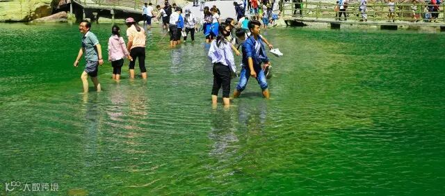 站在水边的栈道上,晶莹剔透的流水映衬着游人的脸庞,面对着如此纯净的流水,不禁萧然起敬,与它对视的瞬间内心的震撼,刻骨铭心。