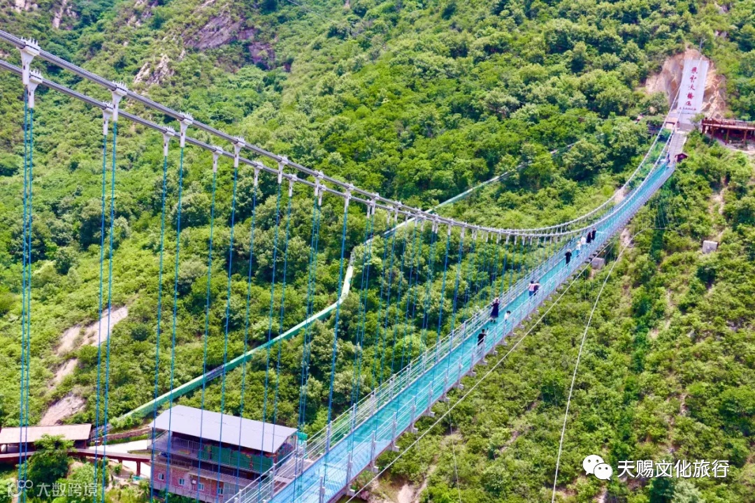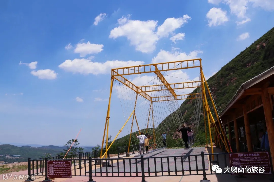 飞雲天桥——是中原地区跨度最长的全透明高空5D玻璃天桥,桥长266米,垂直落差106米,一桥飞架两山,现代建筑艺术与自然山水景观相存相依,完美呈现。