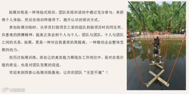 西泰山拓展训练基地,位于西泰山风景区内,占地面积一万三千多平方米,总投资2000余万元,是目前中原生态区投资最多,规模最大,器械最全的拓展训练基地。